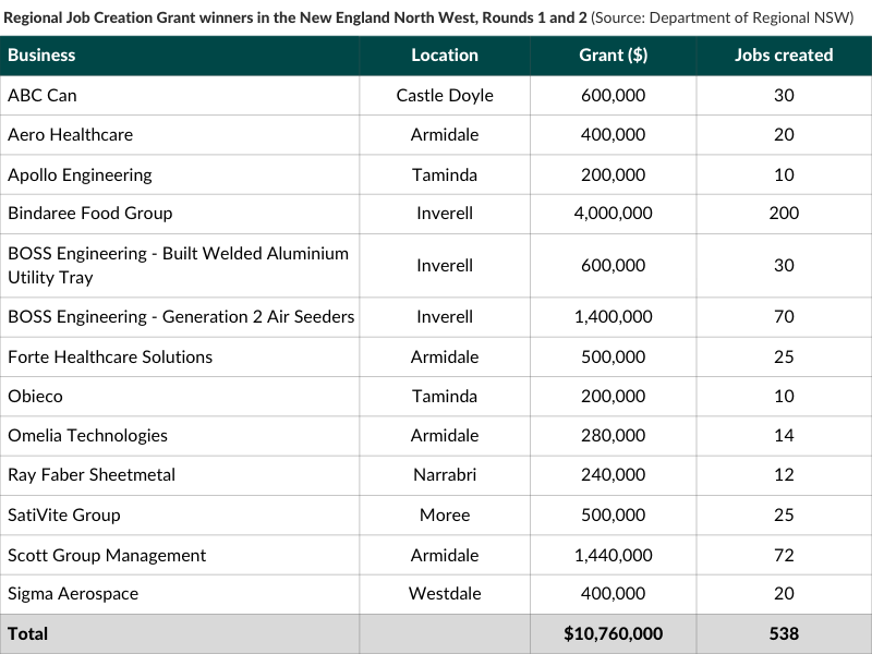 The Regional Job Creation Fund has so far helped create over 500 jobs in the New England North West, and is set to create more with the next round of grant applications open now.
