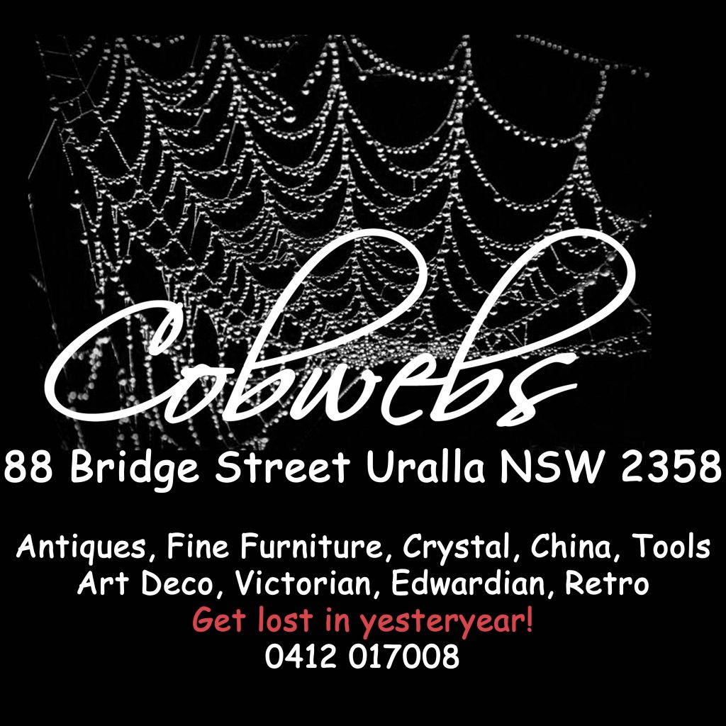 Cobwebs Antiques & Collectibles are a husband & wife run small antique shop in the heart of Uralla.