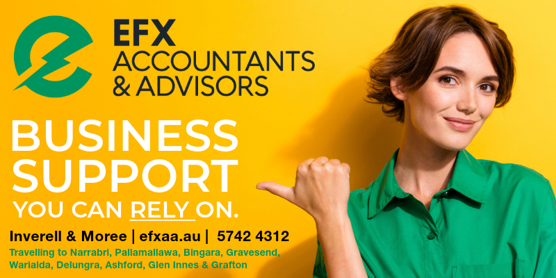 Fast forward through some difficult but rewarding work in Tambo, a stint in finance management and accounting work in Brisbane, and the ups and downs that most of Australia experienced through COVID and Ms Ridley has now moved to the New England Region. Here she is at the helm of EFX Accountants and Advisors with a dedicated team of 5 bookkeepers and accountants who all work remotely, plus herself and an administrative assistant who are on the ground in Inverell and Moree.