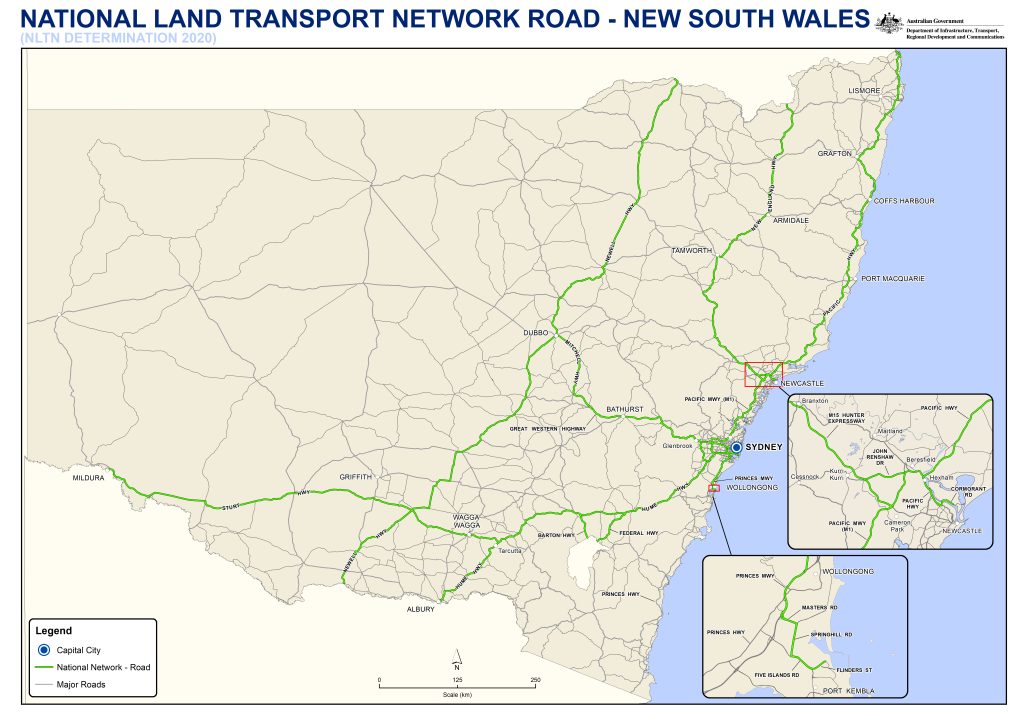 The National Land Transport Network Road map of NSW. (Australian Government)