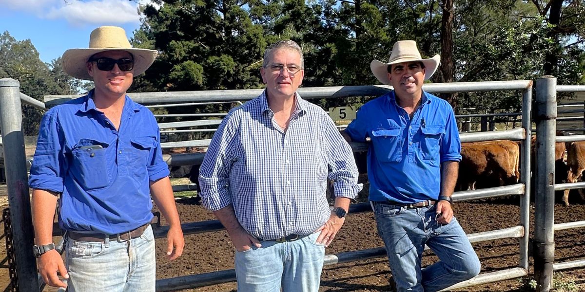 Richie is pictured with Mitch Donovan and Sam Barnsley from Donovan Livestock Property in Grafton.