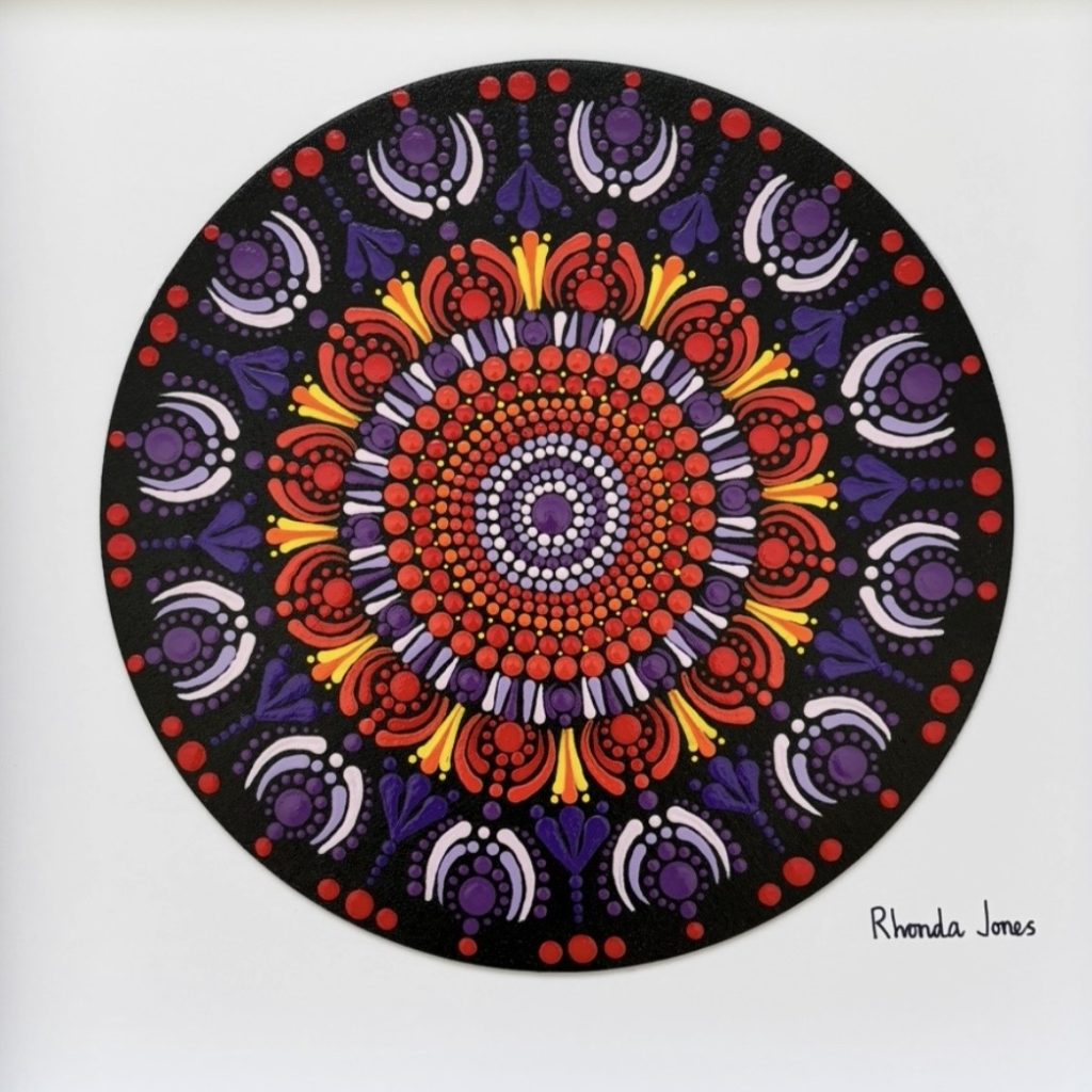 Owned and operated by local artist Rhonda Jones, the business officially launched in 2025 after a year spent refining her craft – painting, dotting and framing intricate mandalas by hand. What began as a personal creative outlet has quickly grown into a distinctive offering within the region’s vibrant handmade scene.